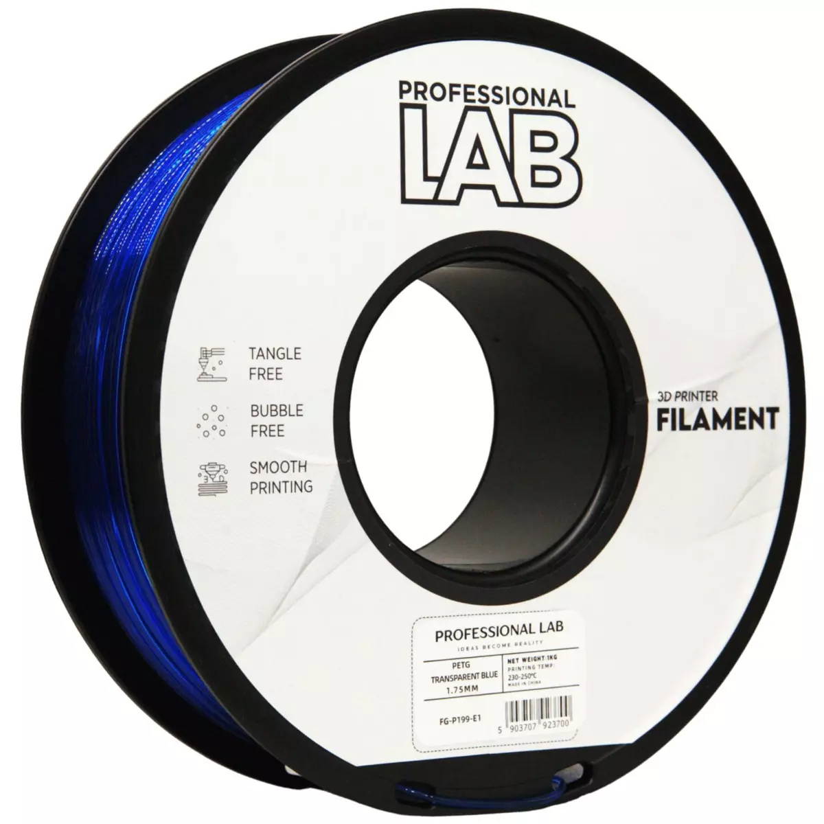 PETG filament Professional Lab 1 kg blue transparent
